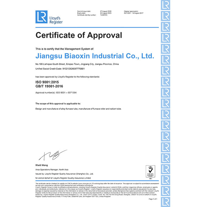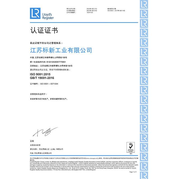 ISO 9001認(rèn)證證書